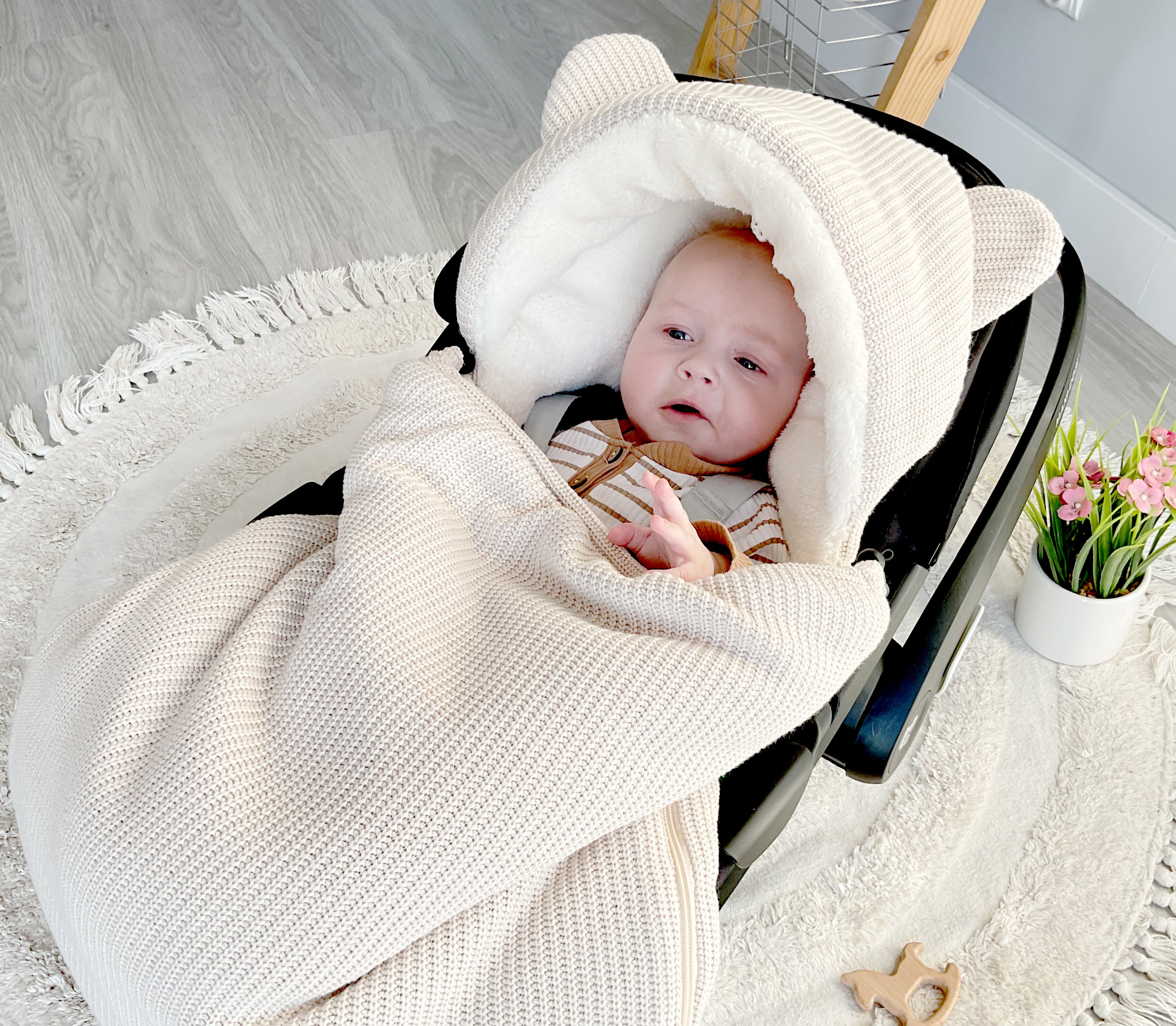 Das perfekte Geschenk für werdende Mütter und Babys. Ein Must-have für jeden Spaziergang. Er umhüllt das Baby sanft und warm. Er lässt sich problemlos an jeder Babytrage befestigen, deren Seitengurte nicht fest mit den oberen Gurten verbunden sind.