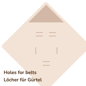 Präzise verarbeitete Gurtschlitze sowie ein starkes Klettverschlusssystem bieten deutlich mehr Komfort und Stabilität als herkömmliche Kunststoff- oder Metall-Druckknöpfe. Die Decke bleibt sicher an ihrem Platz und hält Ihr Baby angenehm eingehüllt.