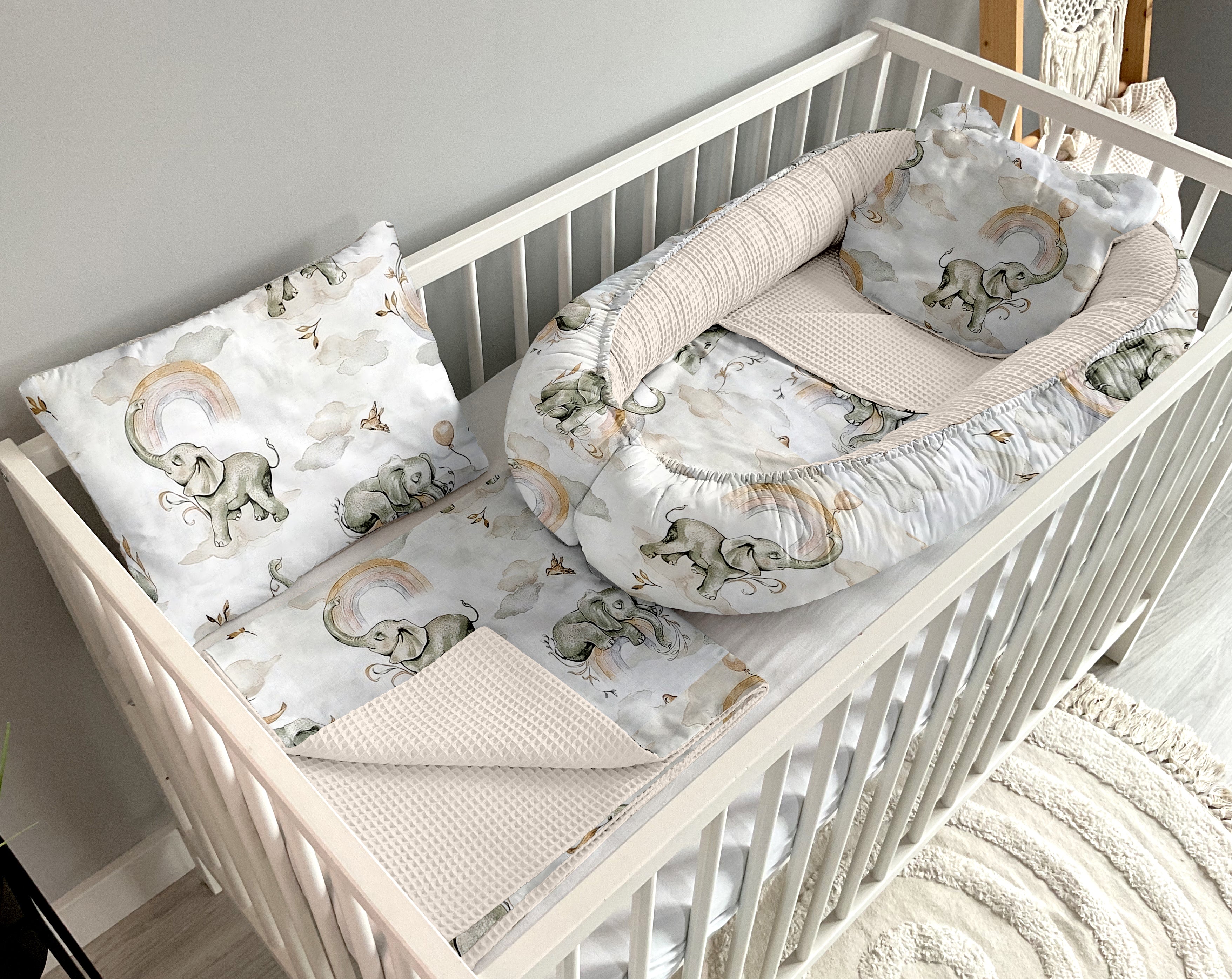 Babynestchen 5-teiliges Set | Beige Elefanten und hellbeige