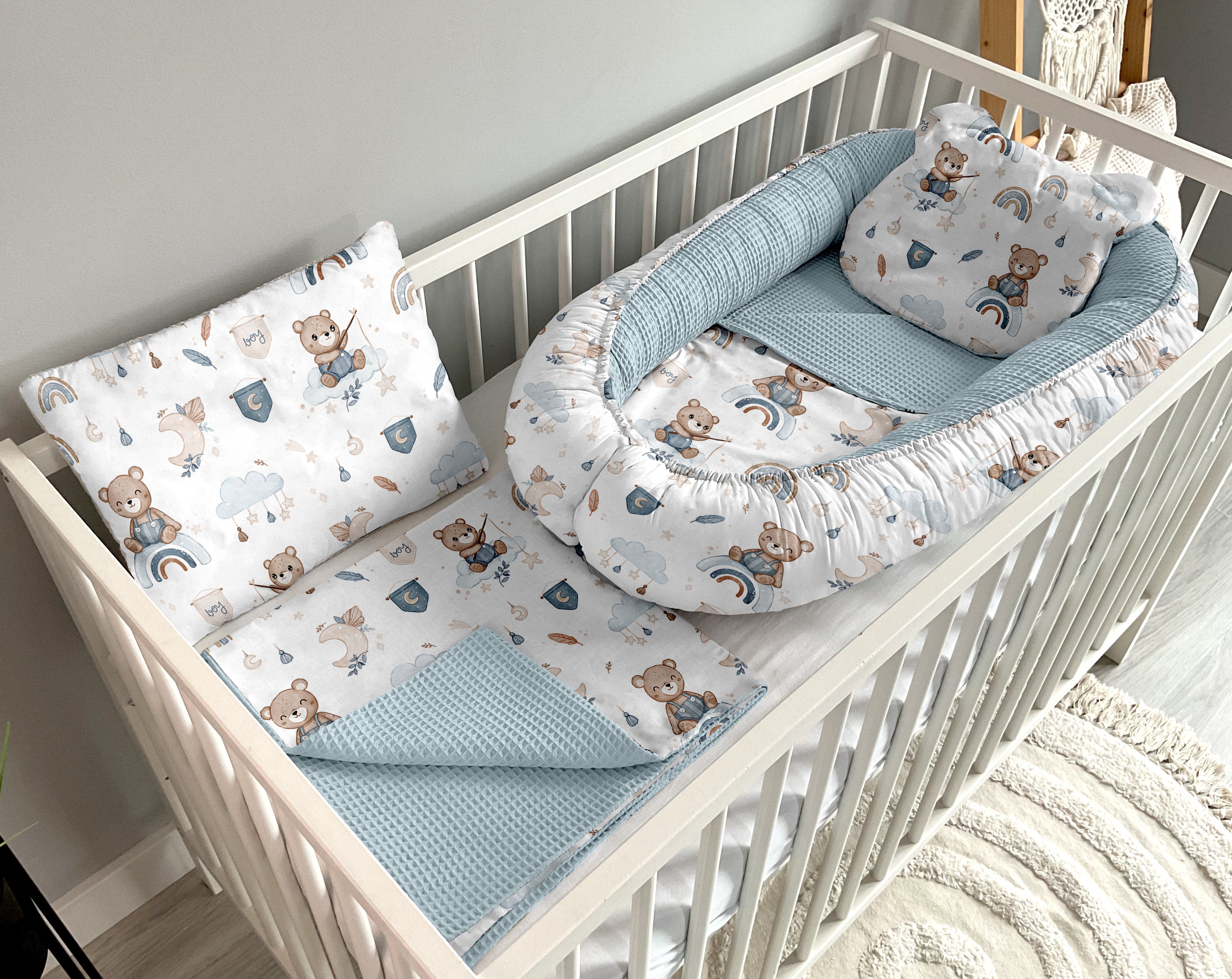 Babynest 5 piece set | Dreams of Sleepy Bears and Blue [PREMIUM]