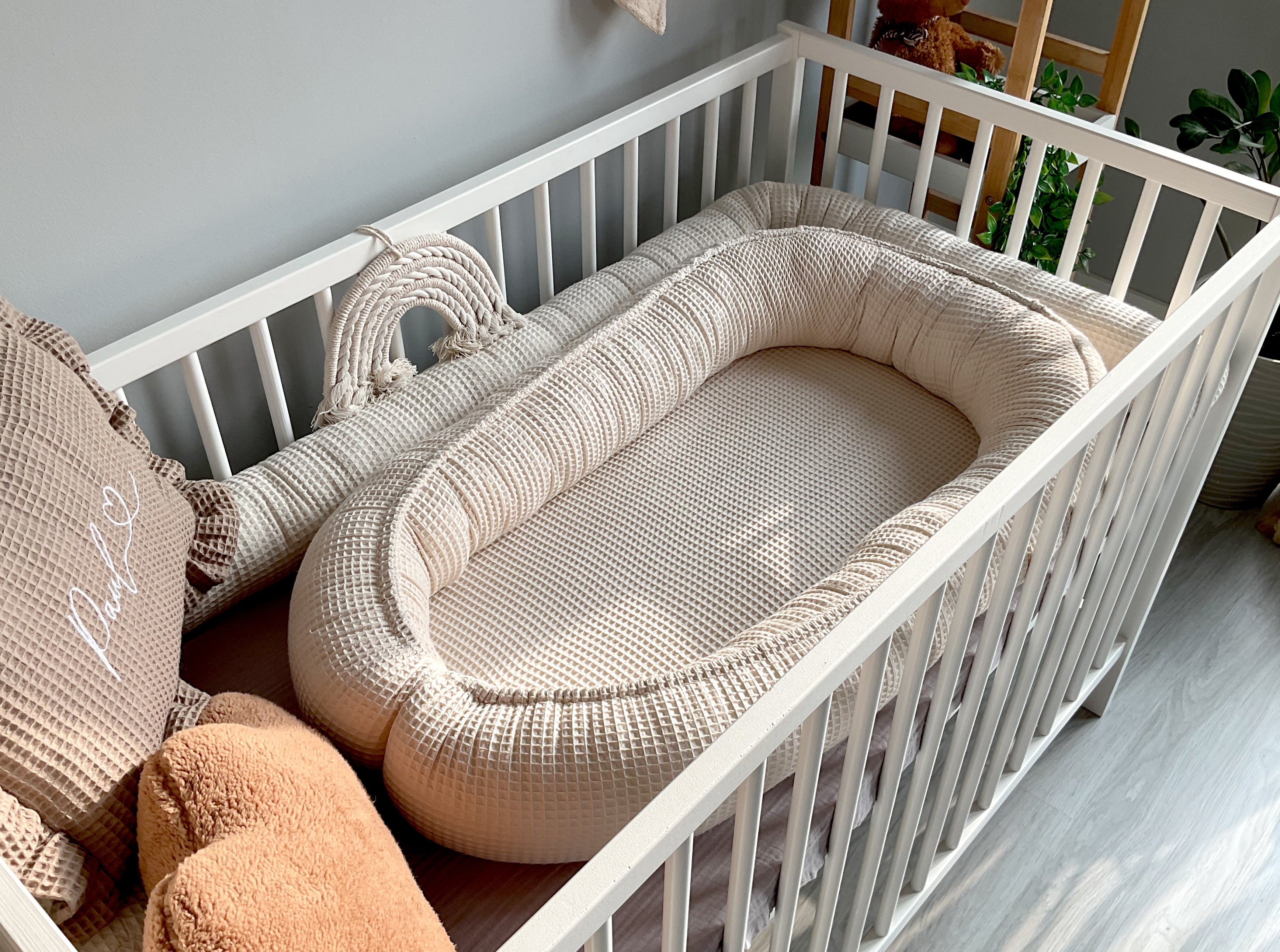 In our cocoons, it is stiffened with a sponge also used in the production of bed mattresses. This is due to the fact that the toddler, whether in a cot or in another place where we put him in the cocoon, sleeps on a similar base both in terms of hardness and warmth. A hard base also promotes cognitive functions. It is easier for a child to turn around on such a base, push off from the base.