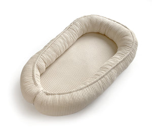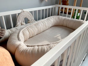 A baby cocoon that will give your little one a sense of security. You can adjust the cocoon with a string, you can open it completely at the feet, so it will last a very long time. You are buying the color from the main photo, the rest of the photos are for illustration purposes only.