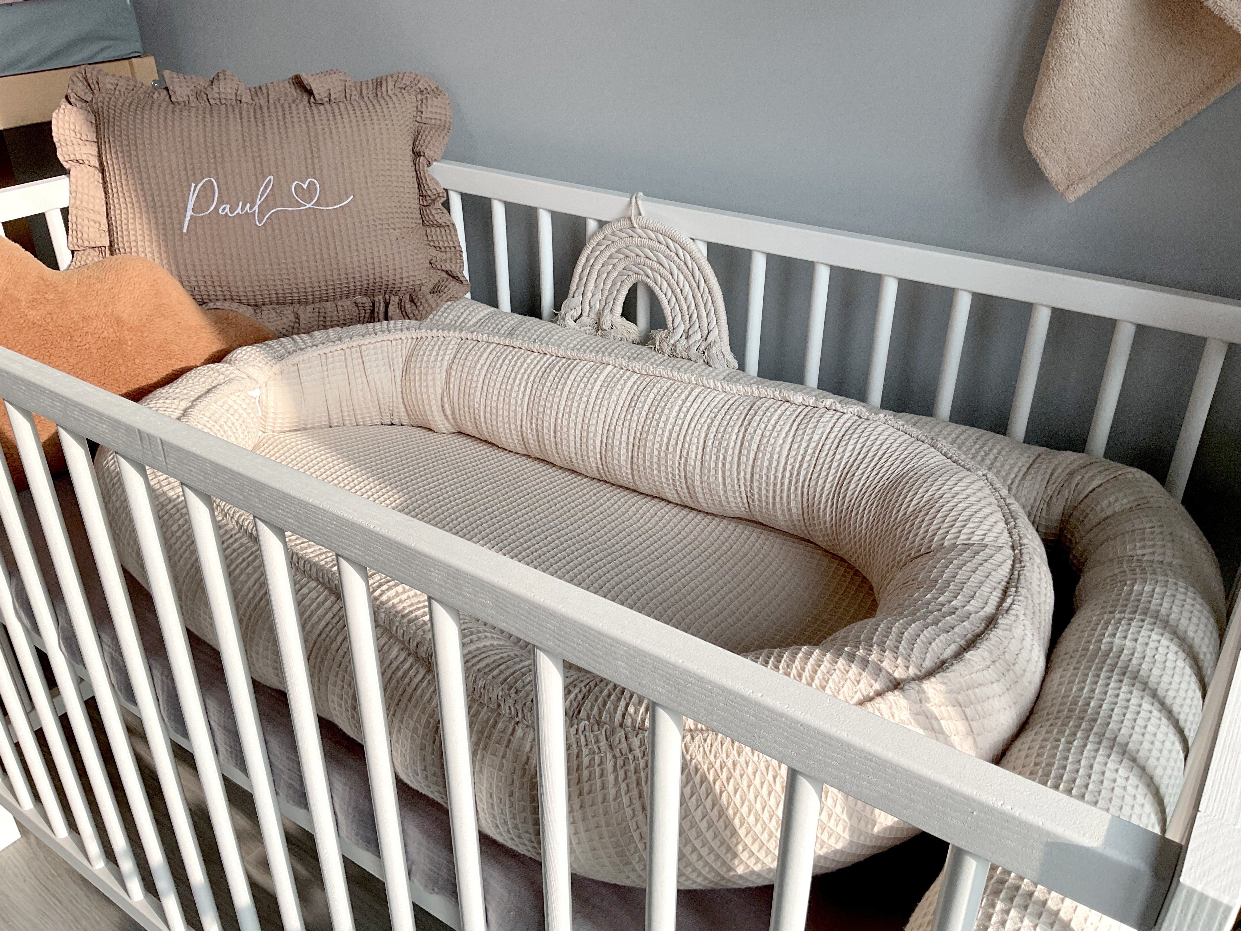 The stiffened bottom of the cocoon is an absolutely essential element that each of our nests has. Attention, using a soft bottom made of any non-woven fabric can be dangerous for your child. On a too soft base, the curvature of the child's body adapts to the base and stays in one position, lasting for a very long time. This can have an impact on the consolidation of body asymmetry.