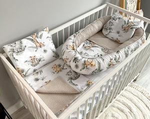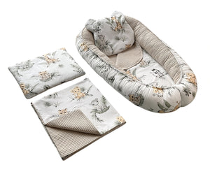 A baby cocoon that will give your little one a sense of security. You can adjust the cocoon with a string, you can open it completely at the feet, so it will last a very long time. You are buying the color from the main photo, the rest of the photos are for illustration purposes only.