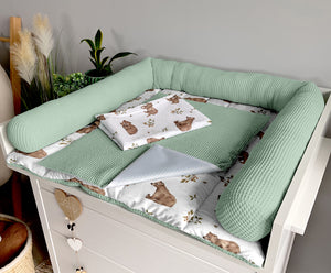 A set for use on a changing table. It will serve from birth, giving you comfort when changing your baby. Choose the size of your changing table. Width (W) Depth (H). If you need a different dimension, please write to us.