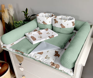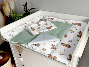 Set 7: Changing mat + two waterproof pads + protective roller + two baskets + blanket 100x75cm + towel 75x75cm + pillow with name