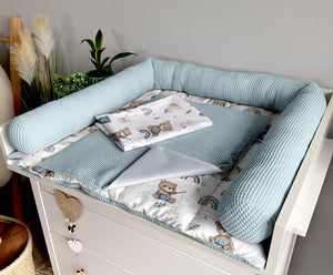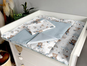 A set for use on a changing table. It will serve from birth, giving you comfort when changing your baby. Choose the size of your changing table. Width (W) Depth (H). If you need a different dimension, please write to us.