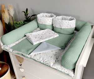 Set 6: Changing mat + two waterproof pads + protective roller + two baskets + blanket 100x75cm + towel 75x75cm