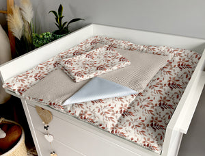 A set for use on a changing table. It will serve from birth, giving you comfort when changing your baby. Choose the size of your changing table. Width (W) Depth (H). If you need a different dimension, please write to us.