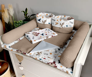 Set 6: Changing mat + two waterproof pads + protective roller + two baskets + blanket 100x75cm + towel 75x75cm
