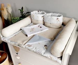 Set 6: Changing mat + two waterproof pads + protective roller + two baskets + blanket 100x75cm + towel 75x75cm