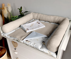 Set 6: Changing mat + two waterproof pads + protective roller + two baskets + blanket 100x75cm + towel 75x75cm