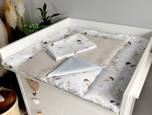 A set for use on a changing table. It will serve from birth, giving you comfort when changing your baby. Choose the size of your changing table. Width (W) Depth (H). If you need a different dimension, please write to us.