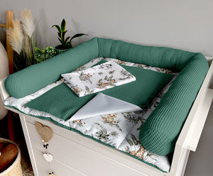 A set for use on a changing table. It will serve from birth, giving you comfort when changing your baby. Choose the size of your changing table. Width (W) Depth (H). If you need a different dimension, please write to us.