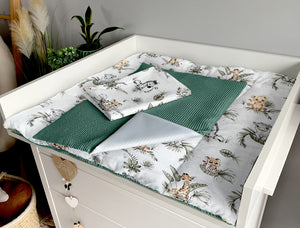 Set 7: Changing mat + two waterproof pads + protective roller + two baskets + blanket 100x75cm + towel 75x75cm + pillow with name