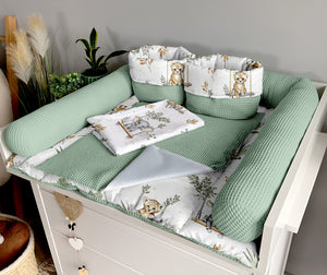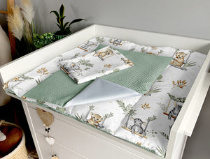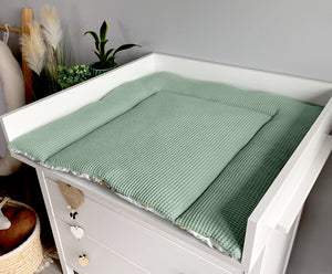 A set for use on a changing table. It will serve from birth, giving you comfort when changing your baby. Choose the size of your changing table. Width (W) Depth (H). If you need a different dimension, please write to us.