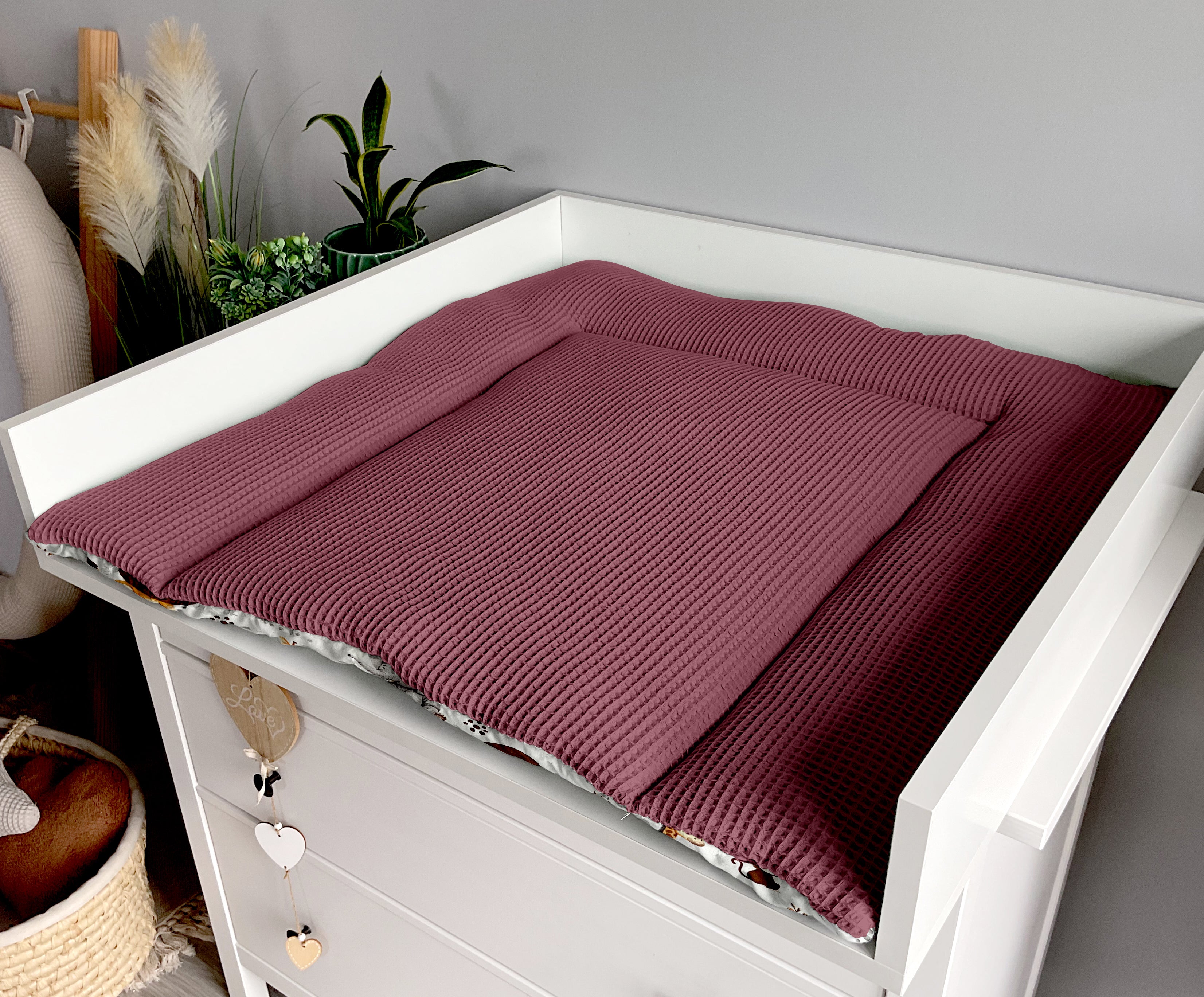 We try to ensure that the photos reflect the colors of the products as best as possible, but remember that each device displays colors differently. Each changing mat has an external seam, it is located on the back of the mat and is not visible during use. This is because we sew the products by hand. This also applies to quilts and blankets.