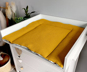 A set for use on a changing table. It will serve from birth, giving you comfort when changing your baby. Choose the size of your changing table. Width (W) Depth (H). If you need a different dimension, please write to us.