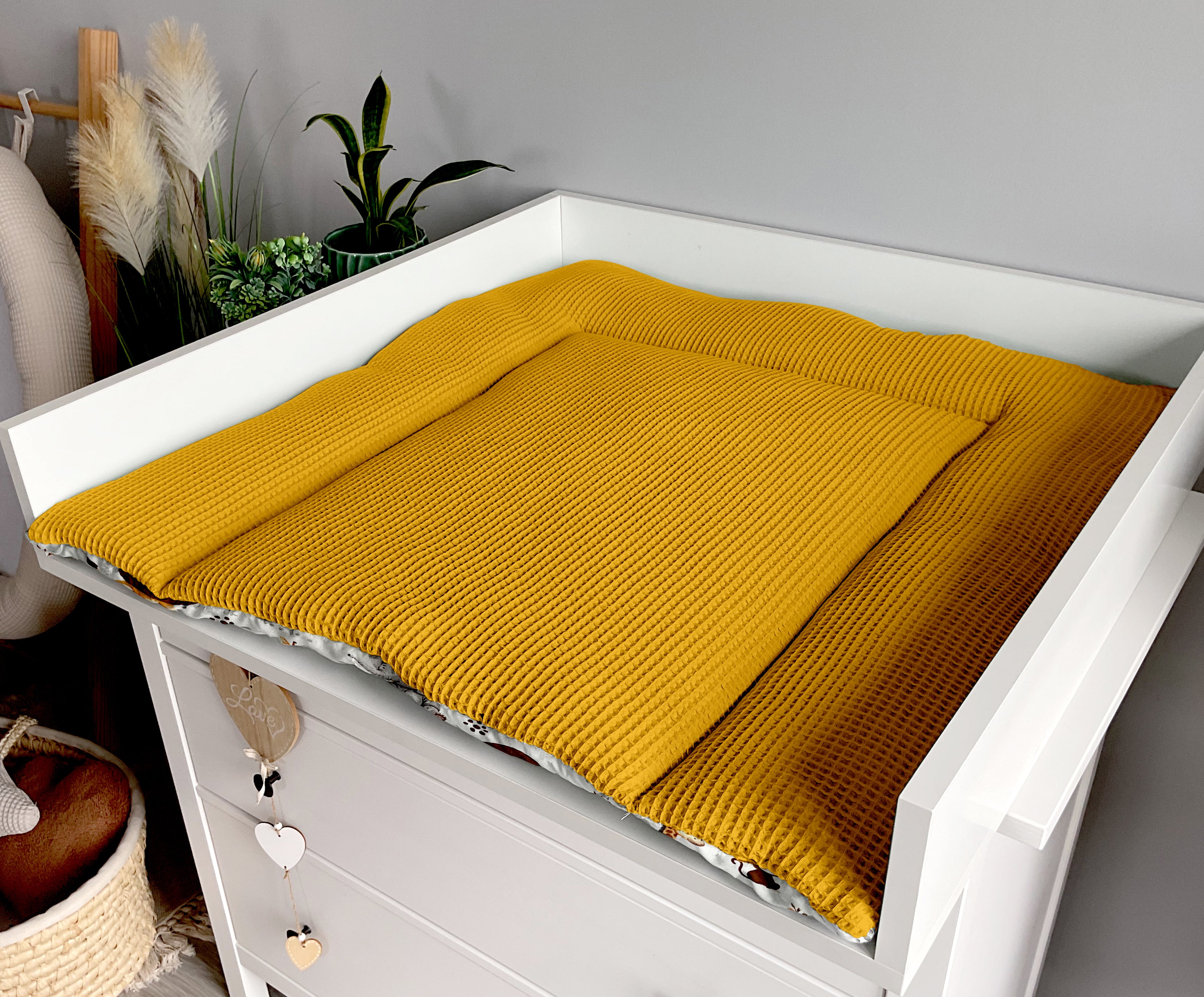 We try to ensure that the photos reflect the colors of the products as best as possible, but remember that each device displays colors differently. Each changing mat has an external seam, it is located on the back of the mat and is not visible during use. This is because we sew the products by hand. This also applies to quilts and blankets.