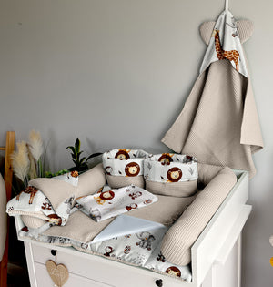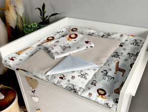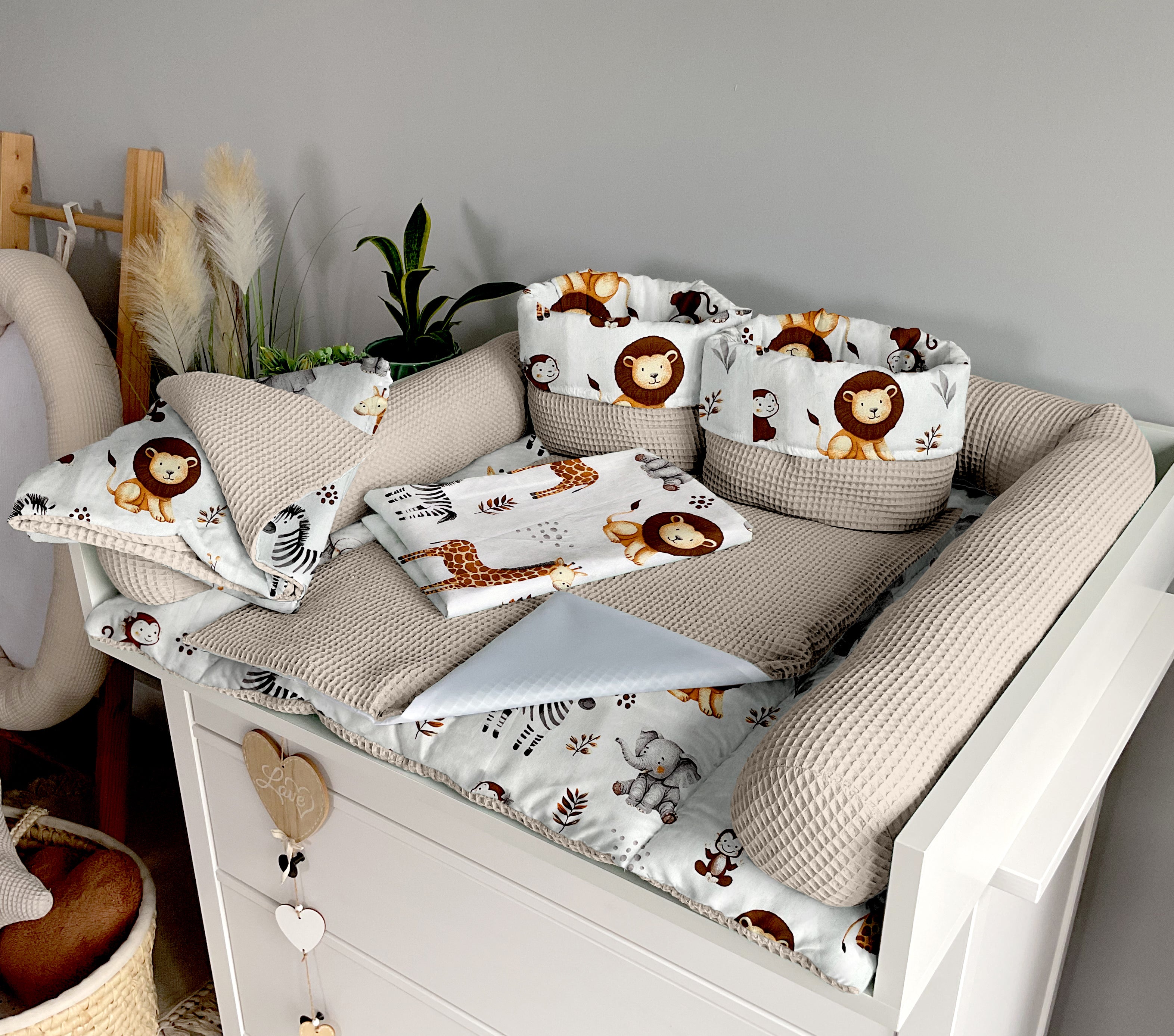 Set 6: Changing mat + two waterproof pads + protective roller + two baskets + blanket 100x75cm + towel 75x75cm