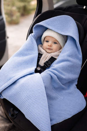 Summer baby car seat blanket | Waffle & muslin | Denim