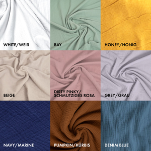 White, Bay, Honey, Beige, Dirty pink, Grey, Navy, Pumpkin, Denim blue |